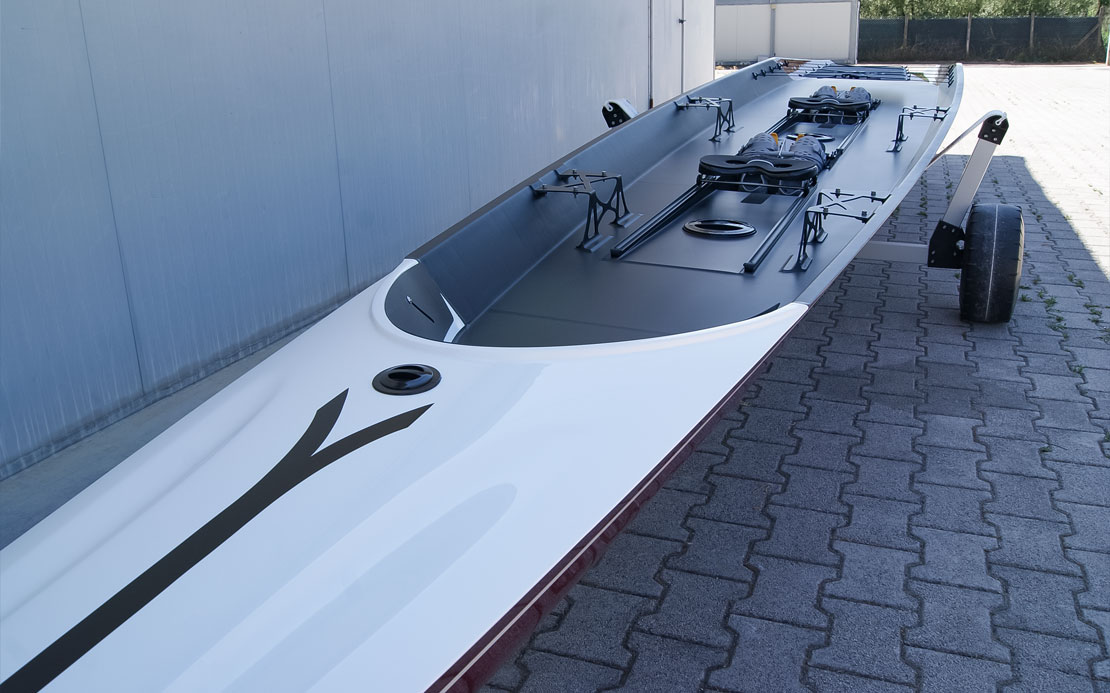 *Optimized distance to the water from the seats to minimize the water in the boat during the stroke;